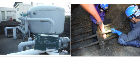 撤去作業においては、巨大なタンク内に大量のろ材(砂)が充填されており、これを安全かつ効率的に搬出・処分する必要がありました。