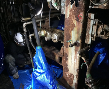 常に水がかかる過酷な環境により、抄紙機の鉄骨フレームに錆と穴が発生していました。将来的な設備撤去の可能性もあり、更新費用を抑えつつも、現時点での稼働を維持するための確実な補修が求められました。